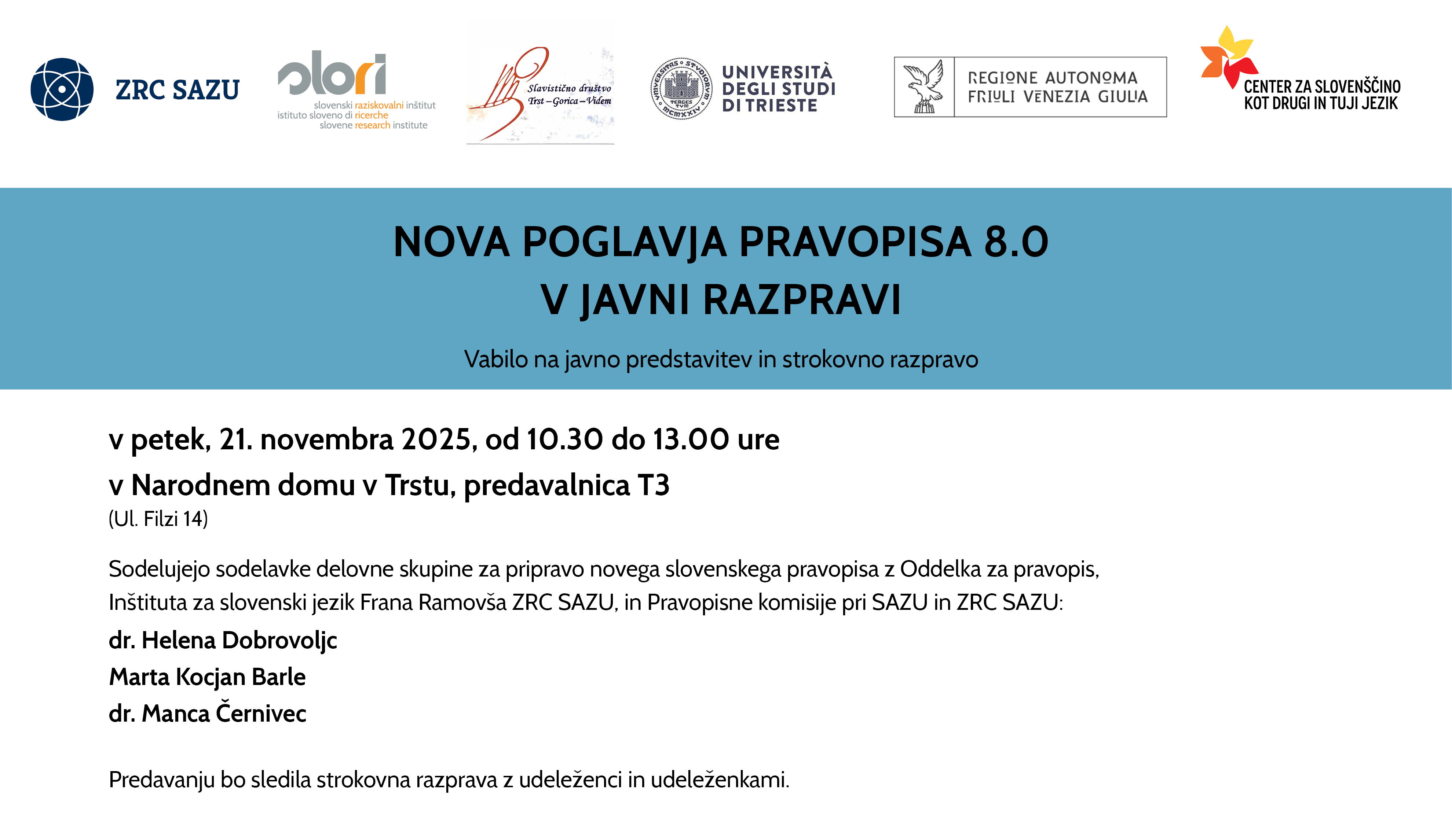 Javna predstavitev in strokovna razprava o novih poglavjih Pravopisa 8.0 v javni razpravi