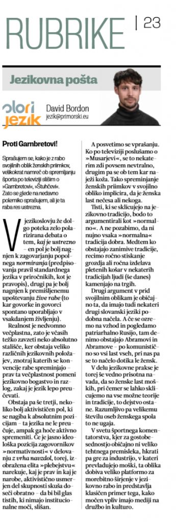 - redno objavljanje jezikovnih rubrik v slovenskih medijih v Italiji.