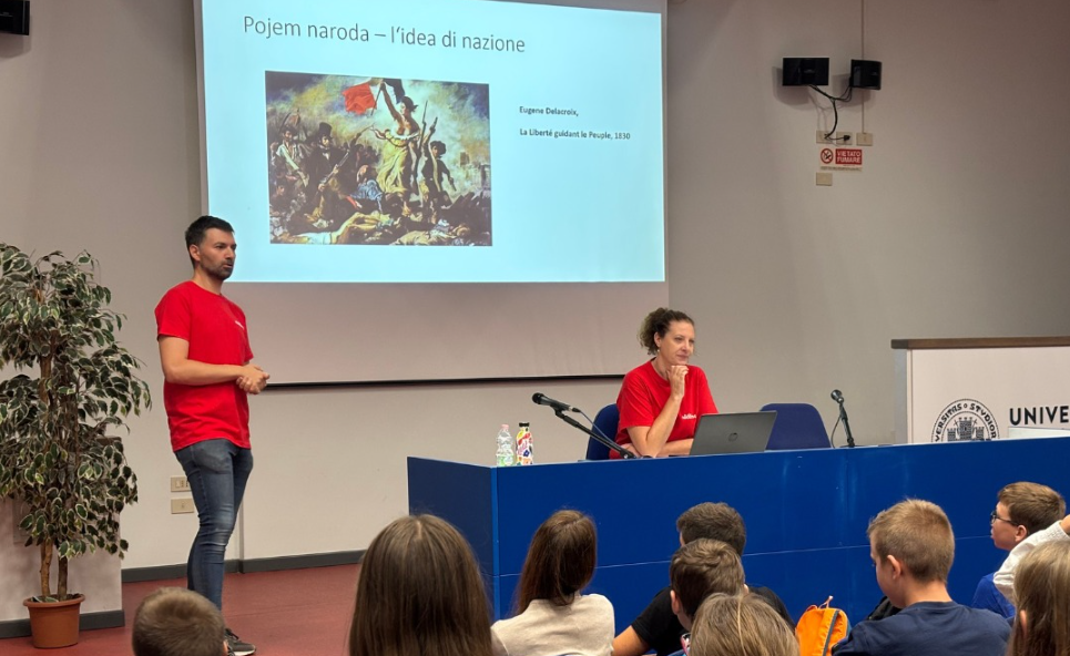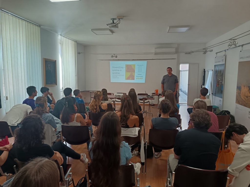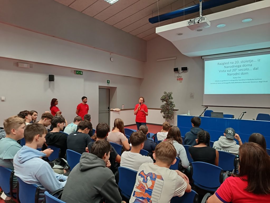 Istega dne je v prostorih Narodnega doma potekalo predavanje Družbene, kulturne in zgodovinske značilnosti Slovenk in Slovencev v Italiji, namenjeno dijakinjam in dijakom prvostopenjskih srednjih šol. Predavali sta SLORI-jevi raziskovalki Zaira Vidau in Helena Lupinc, v imenu Narodne in študijske knjižnice (NŠK) pa zgodovinar Štefan Čok. V petek, 19. septembra, je zasedba predavanje ponovila še za drugostopenjske srednje šole.